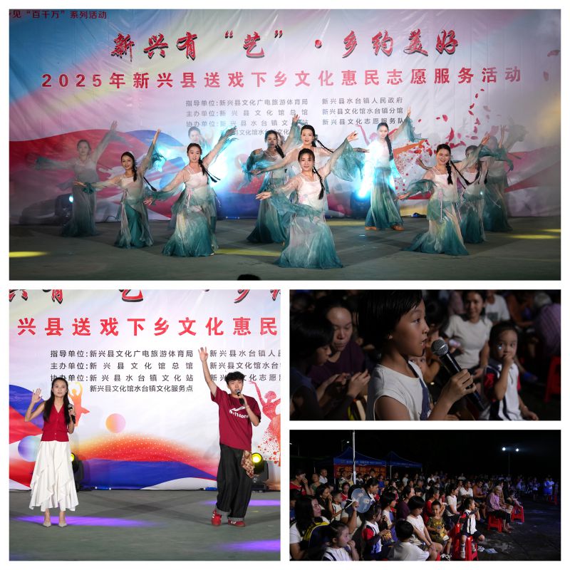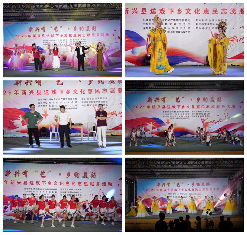 为扎实推进文化惠民工程、高质量满足人民群众精神文化需求,在新兴县文化广电旅游体育局及水台镇政府的指导下,由新兴县文化馆总馆联合水台镇分馆共同主办,水台镇文化站、文化志愿服务队和服务点协办的“新兴有‘艺’·乡约美好”——2025年新兴县送戏下乡文化惠民志愿服务活动于2025年10月13日正式启动,首场演出走进水台镇六乡社区。