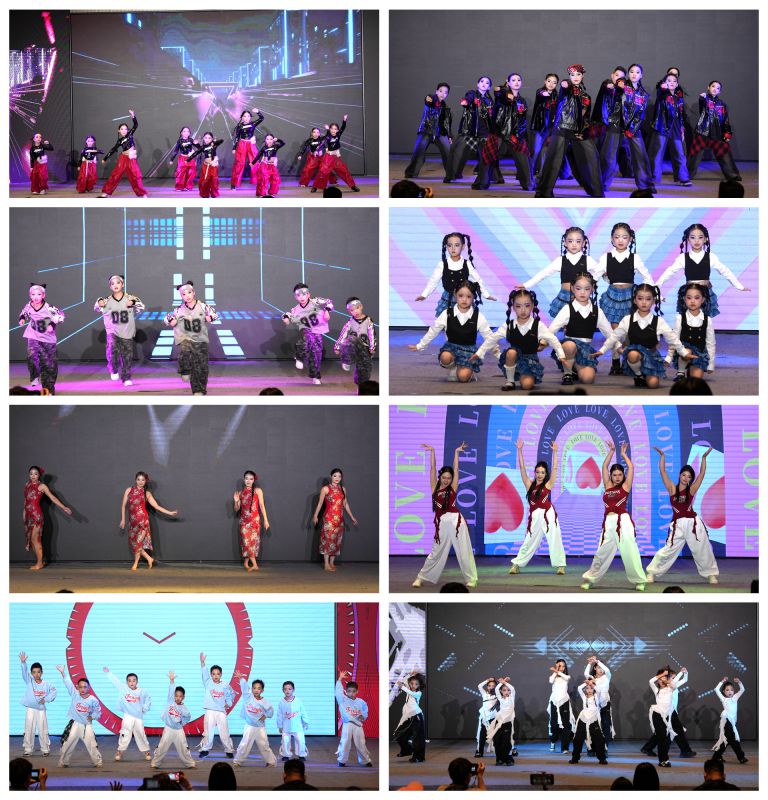 本场舞蹈专场节目编排新颖、活力四射。演出在动感十足的爵士舞《Goodbye Hello Kitty》中热烈开场,迅速点燃现场气氛。随后,街舞《元气五小将》以充满朝气的舞步展现了少年们的蓬勃活力,爵士舞《美美的Honey》则演绎出甜美轻快的别样风情,国风舞蹈《永夜》意境悠远,以柔美舞姿传递出古典韵味,最后的压轴爵士舞《这很OK!》与创意街舞《闹天宫》先后登场,前者彰显自信洒脱的时尚态度,后者则以诙谐生动的编排重新诠释经典故事,将演出推向高潮。
